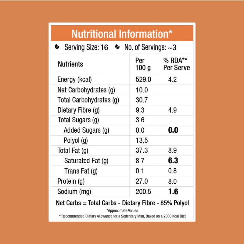 With just 0.5 g net carbs per cookie, they are thoughtfully crafted for low-carb lifestyles including Keto, Paleo, Atkins, and Vegan diets. Tested to support ketosis, these cookies are free from sugar, maida, and chemical preservatives—only clean, wholesome ingredients.
